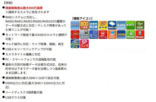 SPリンクシリーズ ネットワークビデオレコーダー(NVR) 64chモデル