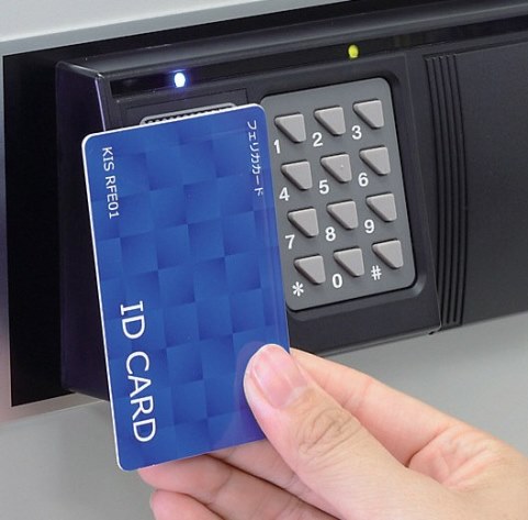 FeliCa・MIFARE対応のスマホ、ICカード、社員証を金庫の鍵として使用できます。