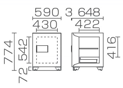 ■外寸:幅590 × 奥行651 × 高さ774ミリ ■内寸:幅430 × 奥行420 × 高さ542ミリ