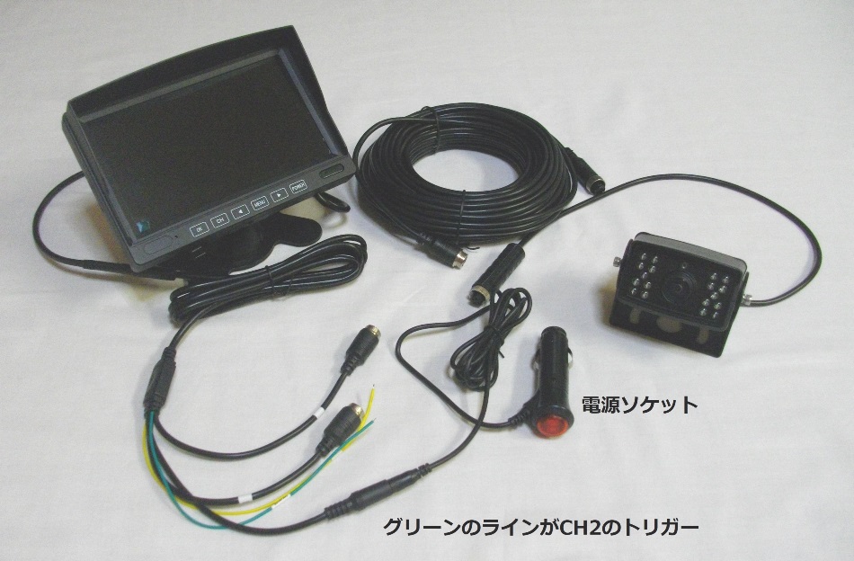 カメラ1台で使用される場合はチャンネル2に延長ケーブルを接続して下さい。緑のラインがチャンネル2のトリガーです。